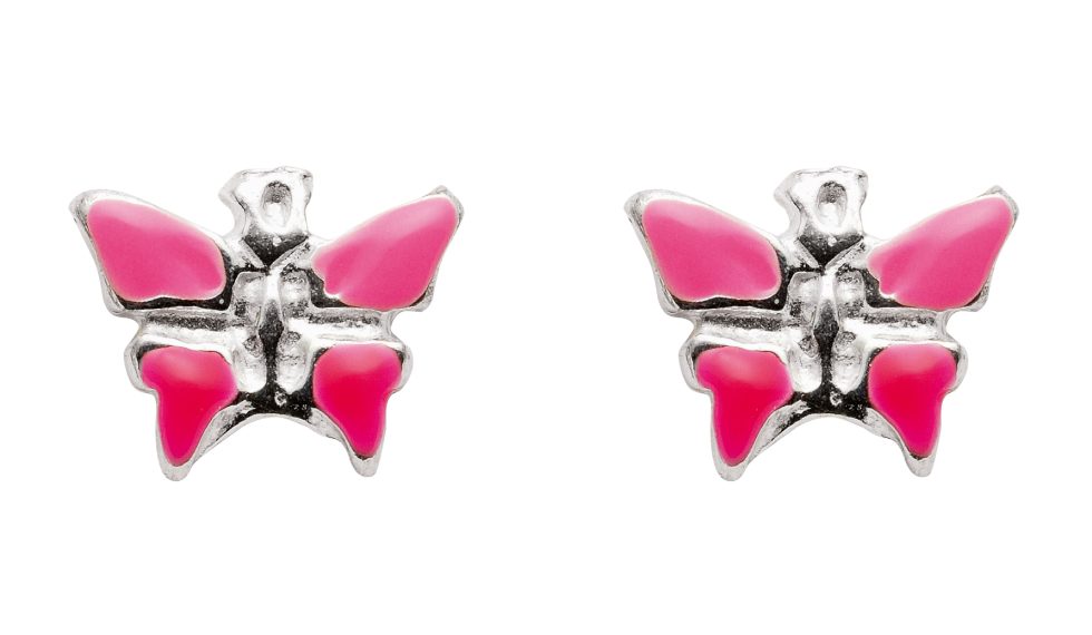 Material: Silber Motiv: Schmetterling rosa rot Bearbeitungsart: emailliert Breite: 8,2 mm Höhe: 7 mm